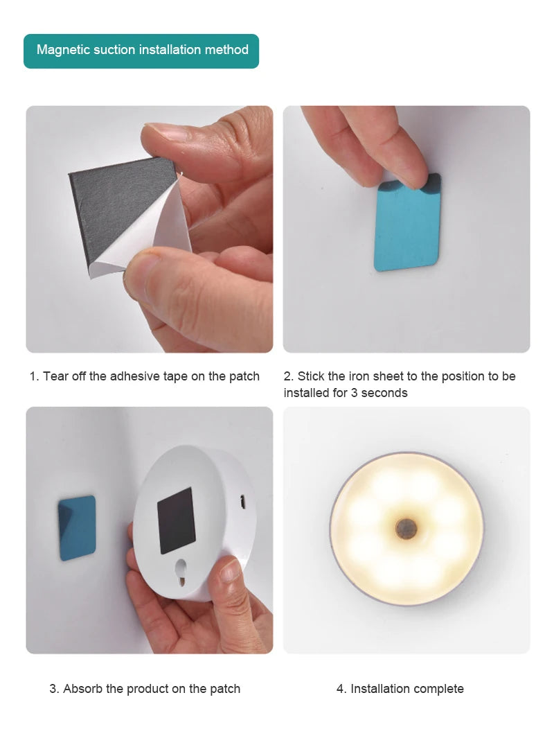 The PIR Motion Sensor LED Night Light provides hands-free illumination for spaces like kitchens, wardrobes, and staircases. This wireless, USB rechargeable light activates with motion, offering soft, energy-efficient lighting. Its sleek design is perfect for any room, delivering convenient, eco-friendly lighting without the need for manual switches.